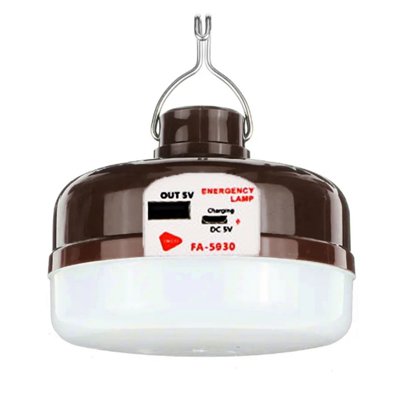 لامپ شارژی خورشیدی 30 وات وسیله ایی مناسب برای سفر و کمپینگ می باشد. جنس بدنه این لامپ از پلاستیک محکم ساخته شده و دارای نور بسیار قوی می باشد. قدرت نور این لامپ 30 وات می باشد که از روشنایی بسیار قابل توجهی برخوردار است. نوع رنگ آن نیز مهتابی سفید بوده و همچنین قدرت نور بین 6 تا 8 ساعت است. لامپ شارژی FA-5830 از 3 عدد باتری 18650 لیتیومی قابل شارژ تغذیه کرده و توسط کابل یو اس بی شارژ شده و پورت خروجی usb آن نیز قابلیت تبدیل شدن به پاوربانک جهت شارژ وسایلی نظیر گوشی و تبلت و... را به این لامپ کاربردی بخشیده است.