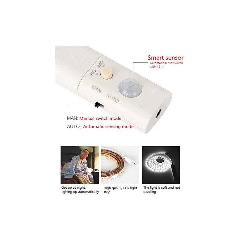 در واقع در یک متر از لامپ ال ای دی 60 لامپ SMD وجود دارد. برق ورودی ریسه ال ای دی از طریق سنسور می باشد که این سنسور قابل کارکردن توسط سه عدد باتری قلمی می باشد. مصرف برق آن به دلیل استفاده شدن از لامپ SMD بسیار پایین و در واقع فوق کممصرف است، یعنی تنها نزدیک به 4.8 وات برای هر متر از ریسه که شاید آن را بتوان برابر با یک چهارم مصرف لامپ 100 وات دانست.